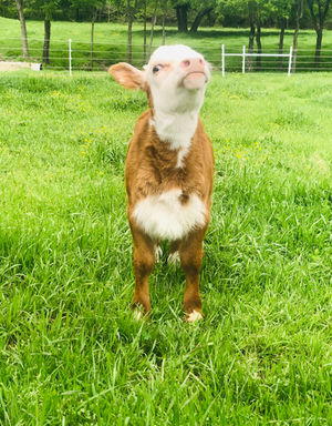 Lexibelle was a bottle baby and prefers people over cows. She loves being brushed, petted, and will come running the moment she sees you!